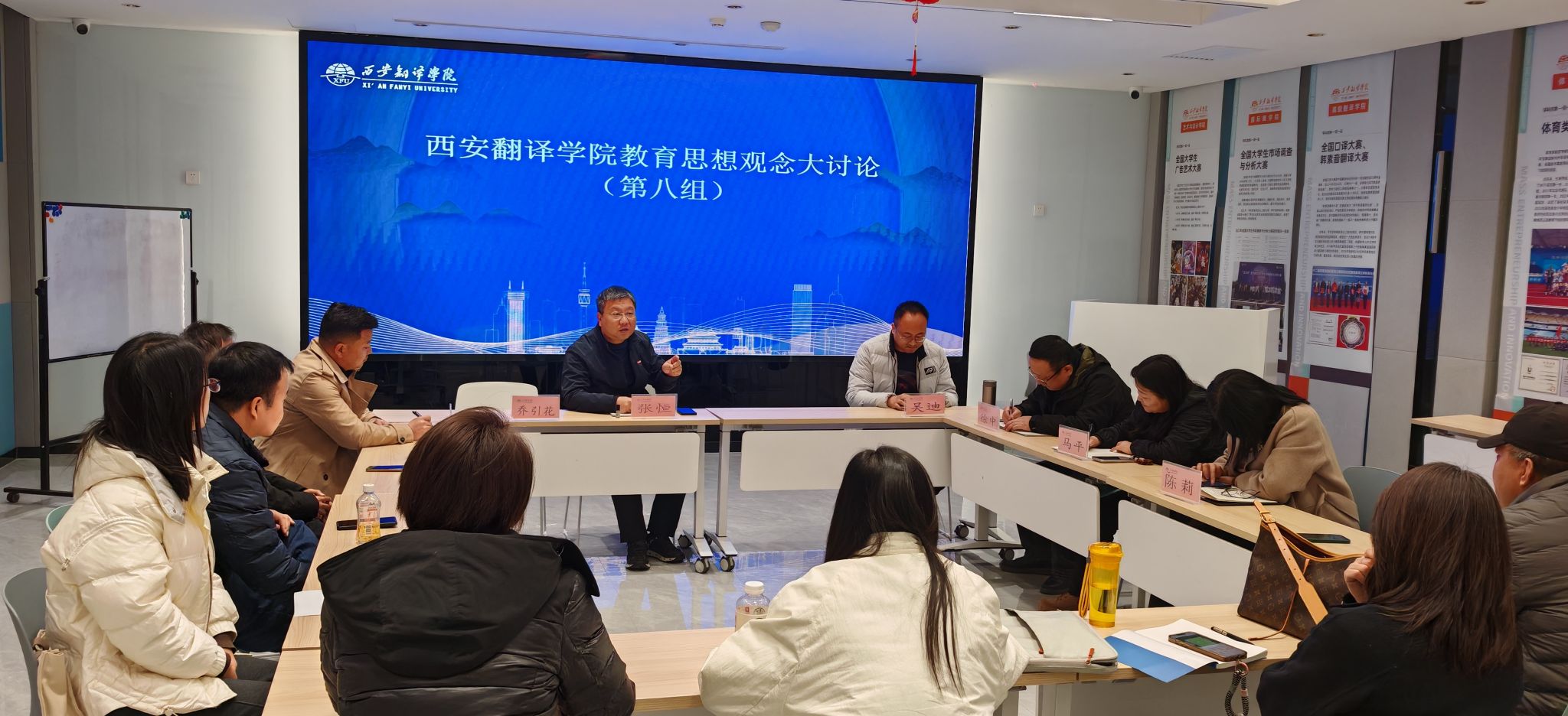 2025年11月17日上午,我院领导及骨干教师参加了西安翻译学院举办的“教育思想观念大讨论”专题讲座。本次讲座以“多重变局背景下的中国民办高校转型与重塑的路径探索”为主题,为我院在新时代背景下的教育改革发展提供了深刻启示。讲座结束后,与会人员围绕议题进行了深入的分组讨论。
