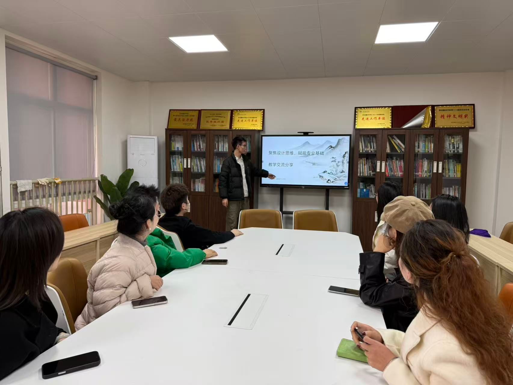 2025年11月19日下午,艺术学院景观教研室在五号楼会议室举办了一场以“聚焦设计思维,赋能专业基础”为主题的教学交流分享会。本次会议由景观教研室主任韩璐老师主持,全体景观专业教师参与,围绕快题设计在教学中的定位、方法创新与育人实效展开了深入探讨。